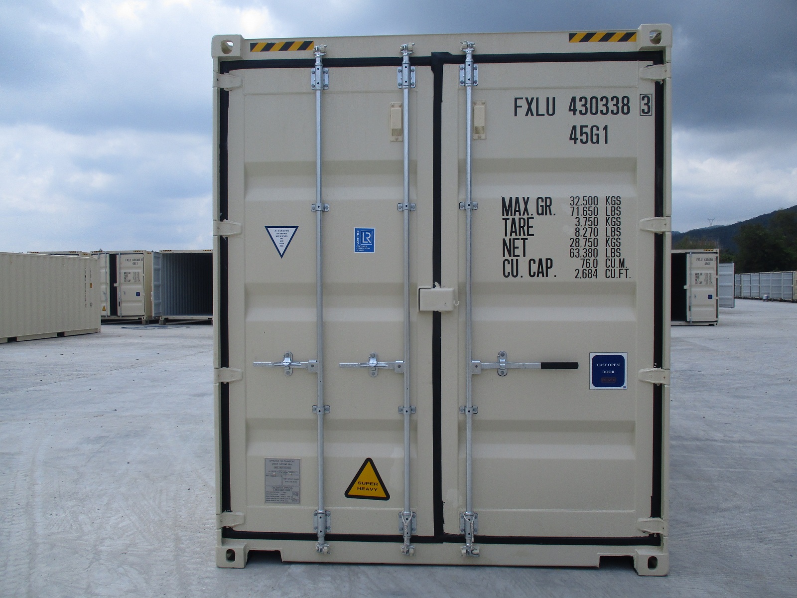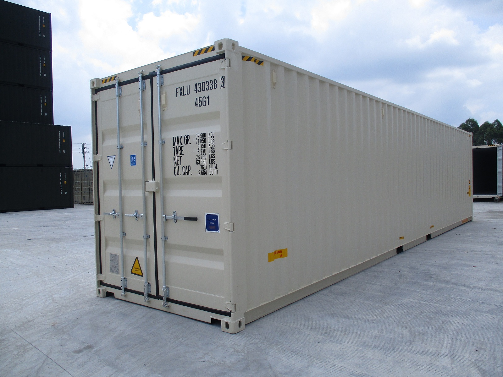 Our 40ft high cube three door containers are new build, one-trip units brought directly from the factory into New Zealand. They may carry the odd scratch or small dent from transport, but every container is structurally sound and certified for five years from the date of manufacture.